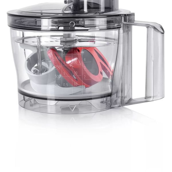 دراین غذا ساز دو سرعت تعریف می شود. در بالای بدنهی اصلی، ظرف خردکن متصل میشود که این امکان را ایجاد میکند تا با اتصال تیغهها و دیسکهای رندهی مختلف، عملکردهای متفاوتی از دستگاه مشاهده شود.
